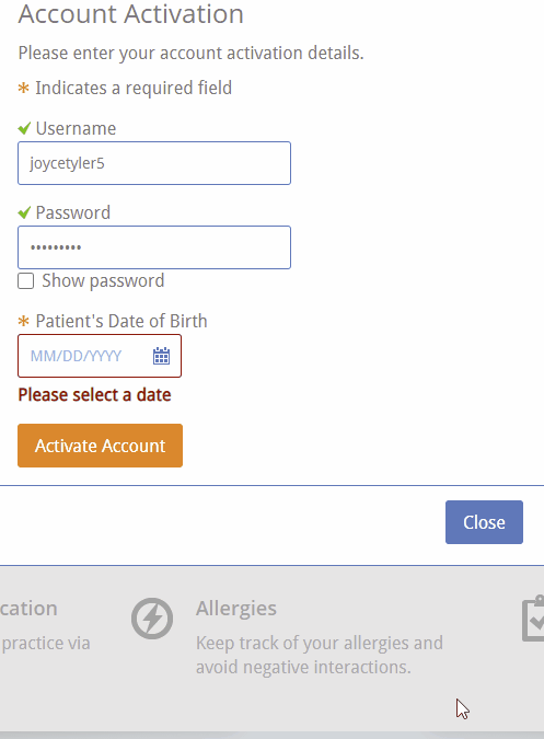 You must have already activated your account to be able to use the login box on this website. If you have not yet activated your Patient Portal account, please fill out and submit this form as a first step.