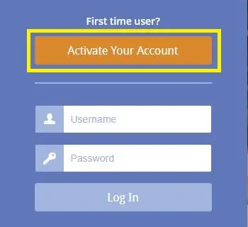 Click the ORANGE Activate your account button above the User Login form. An Account Activation screen will display.